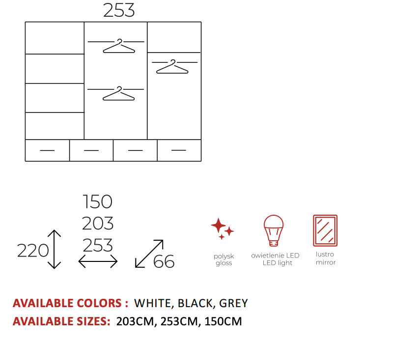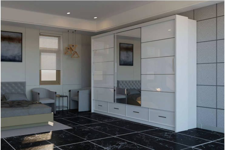 Available in White, Black, and Grey, it blends effortlessly with modern and classic interiors. The spacious design ensures ample storage for clothes, shoes, and accessories, making it a practical yet stylish centerpiece for your bedroom.