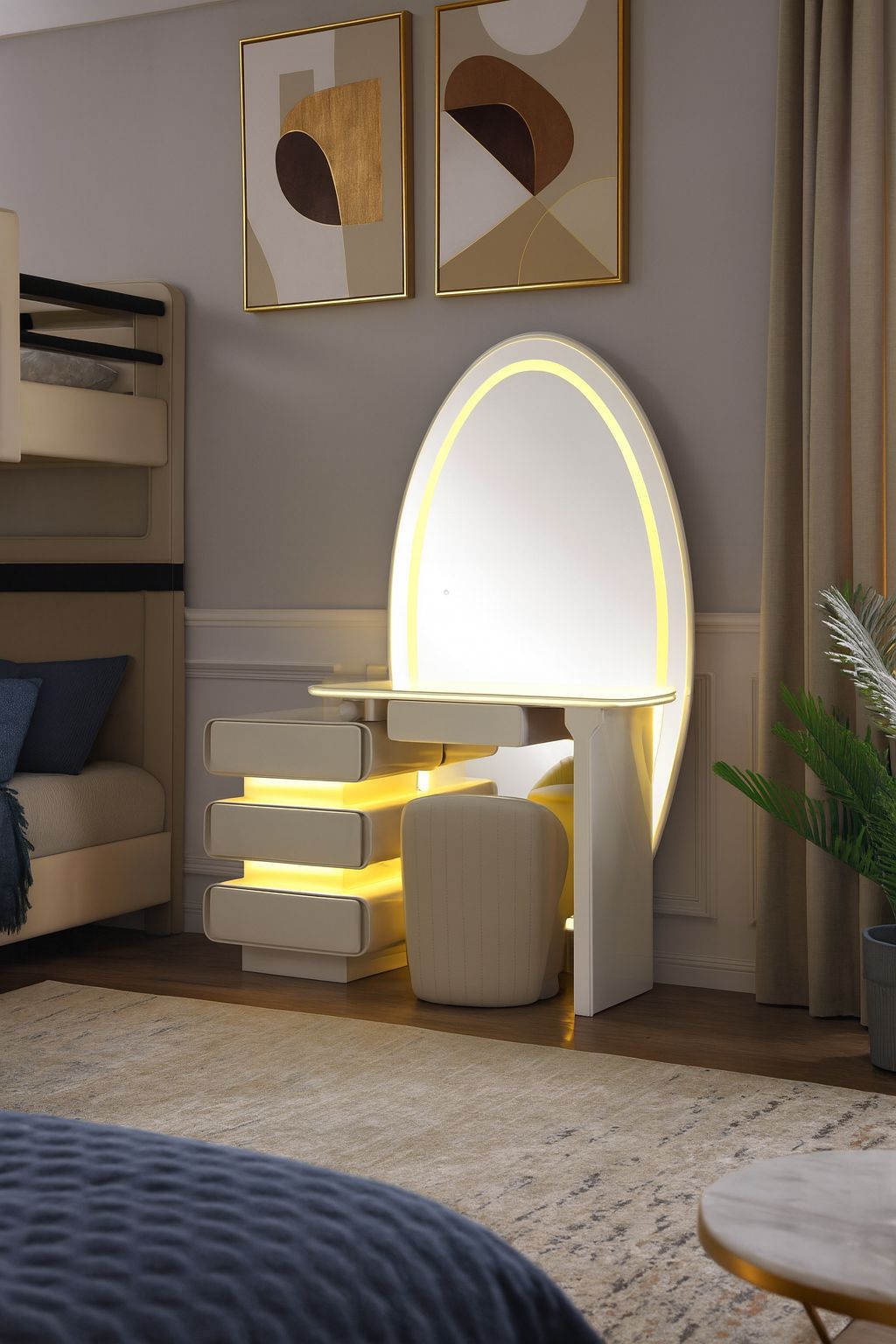 The DT03 Novella Dressing Table combines contemporary design with everyday convenience. Featuring a smooth finish, spacious drawers, and a sleek mirror, it’s perfect for organizing your beauty essentials. Elegant and functional, it adds a touch of modern charm to any bedroom.