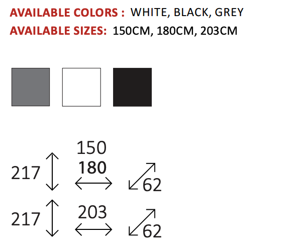 Available Sizes: 150cm, 180cm, 203cm