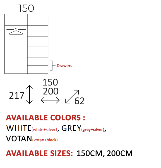 Available Sizes: 150cm, 200cm